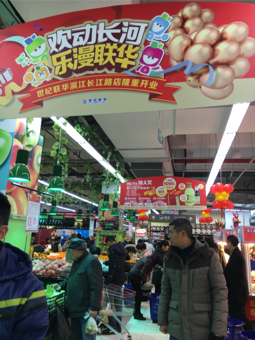 春节期间的开业活动从2016年2月4日持续到2016年2月10日,大手笔促销让利和丰厚诱人的奖品,吸引了周边众多顾客前来“尝鲜”,大波特价商品、精选年货被抢购一空人气火爆程度超乎想象,放眼现场只见人海长龙,“买”到手软的热情与过年的喜庆相得益彰,正可谓“春节购物称心如意,首选联华长江路店”!门店自开业以来,一直坚持对本地居民的日常生活需求进行深度调研,尤其在生鲜领域注重从本地居民的实际购买需求及喜好出发,积极寻找渠道引进绿色健康、质优价“美”的特色品种,如湘湖出产的有机鱼、金华出产的金桑生态草猪肉等,经过洽谈即将上架,届时将为本地居民的餐桌贡献更多舌尖上的美味。
